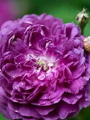 Cardinal De Richelieu: Oudere heesterroos met rood – paars geurende volle grote bloemen hoogte 180 cm